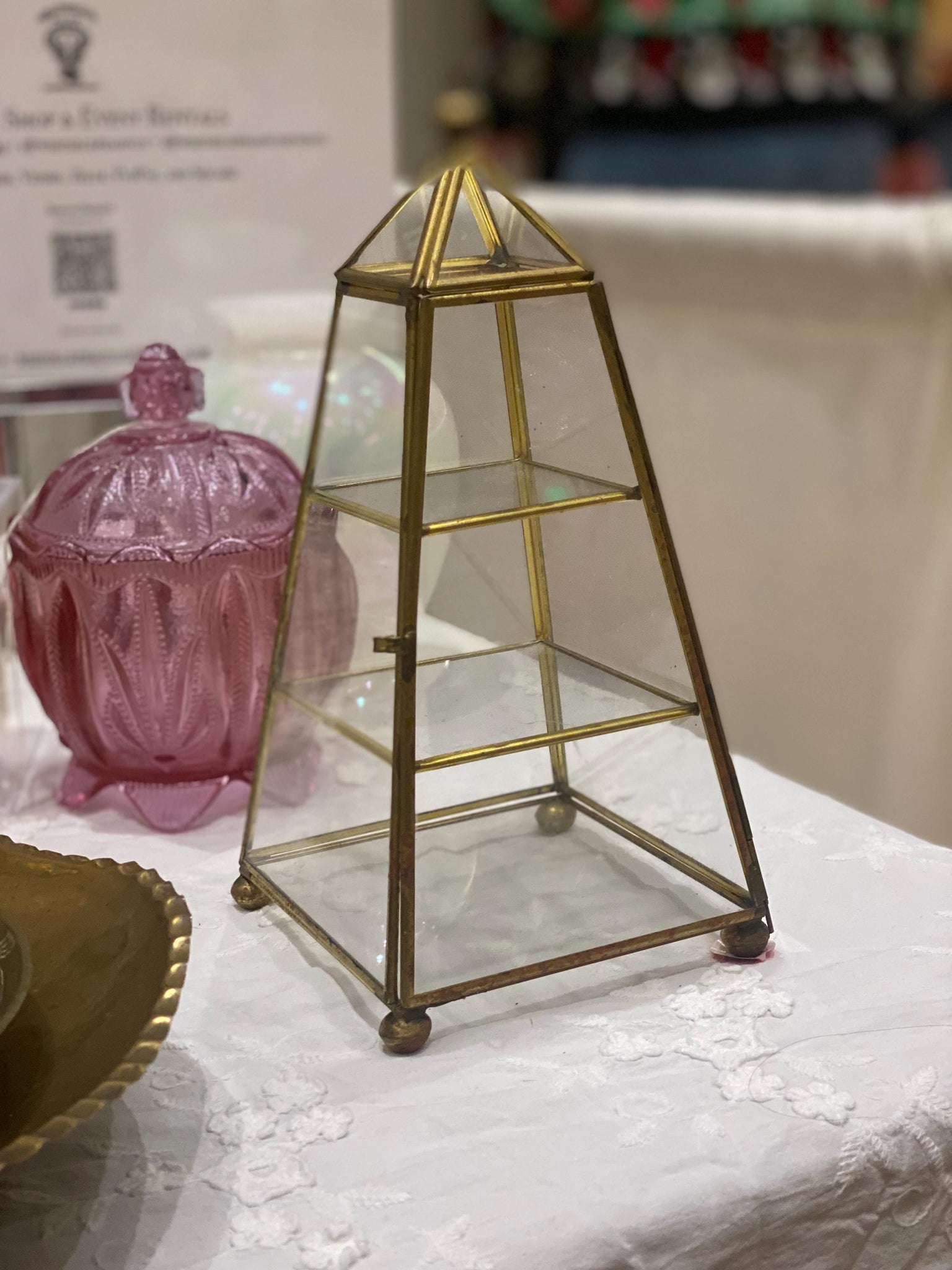 Tall brass and glass curio display shelf, perfect to display miniatures.