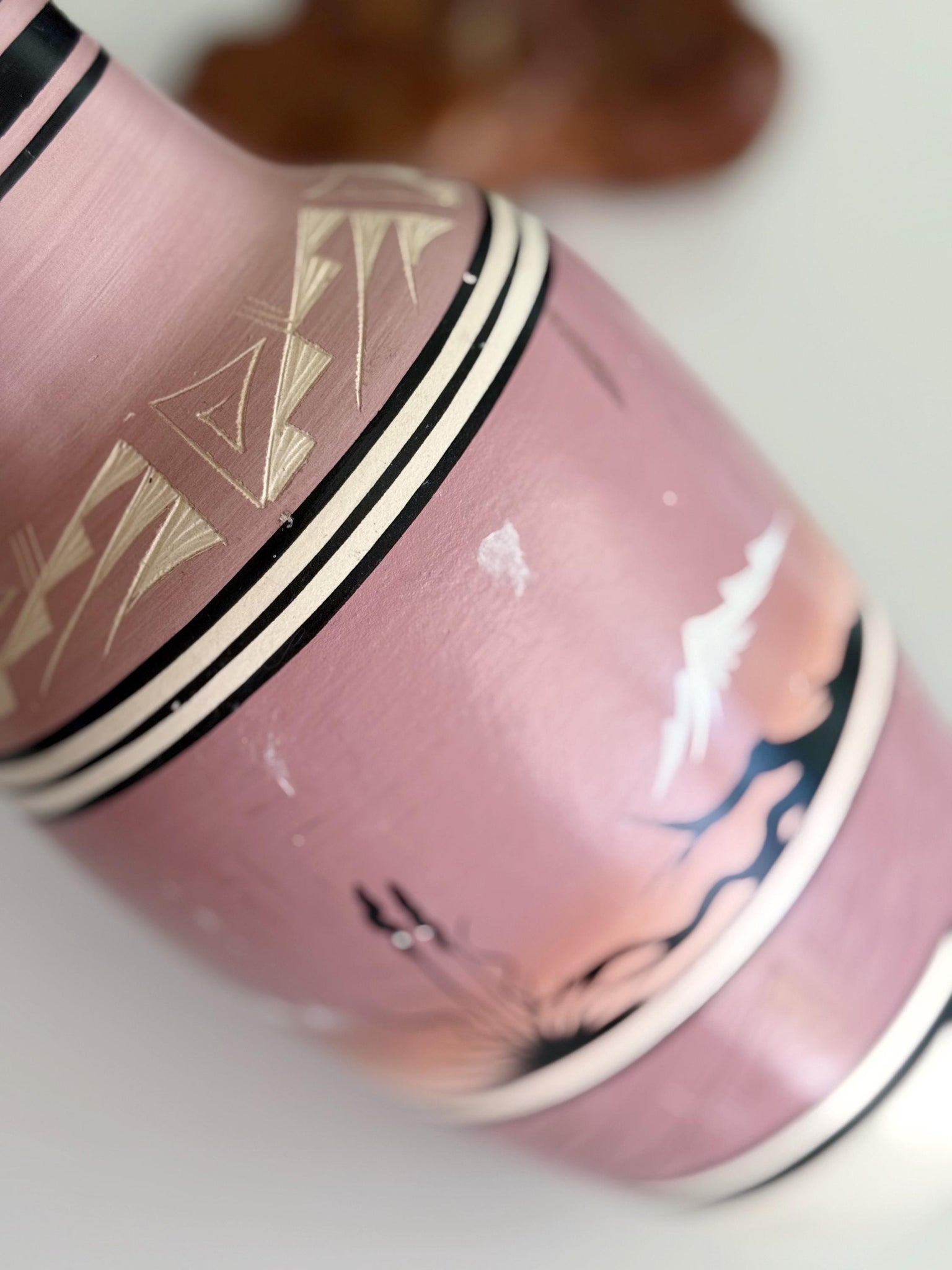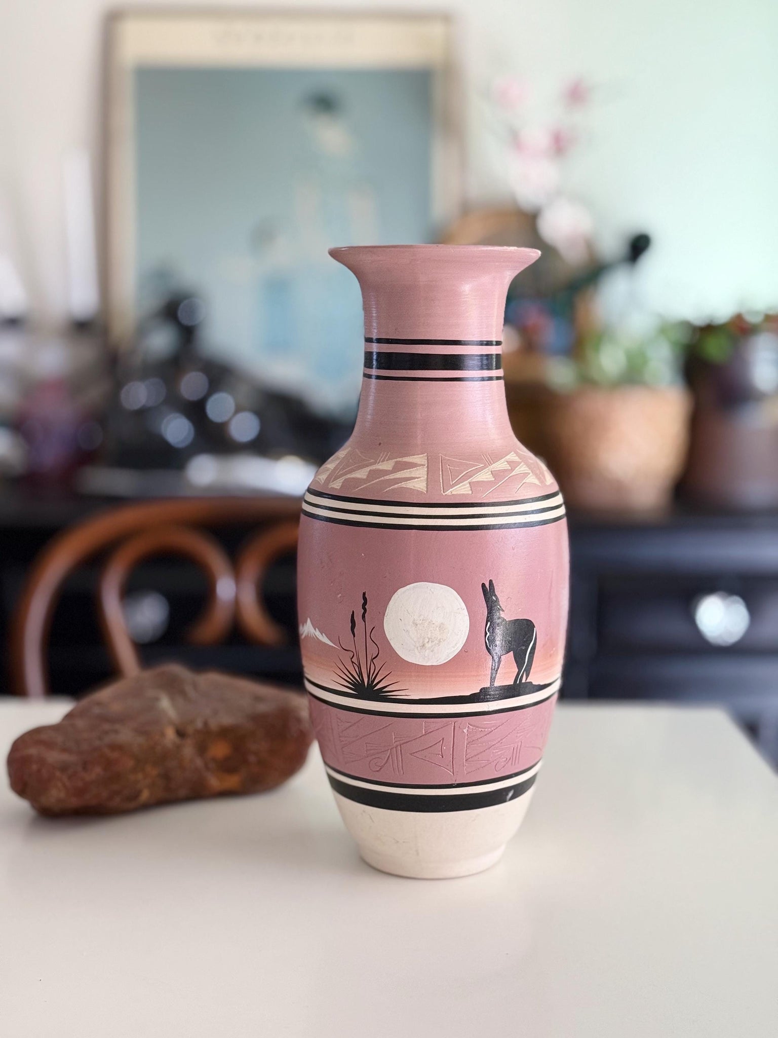 Tall ceramic vase in the style of Vonda Dine Navajo pottery piece.